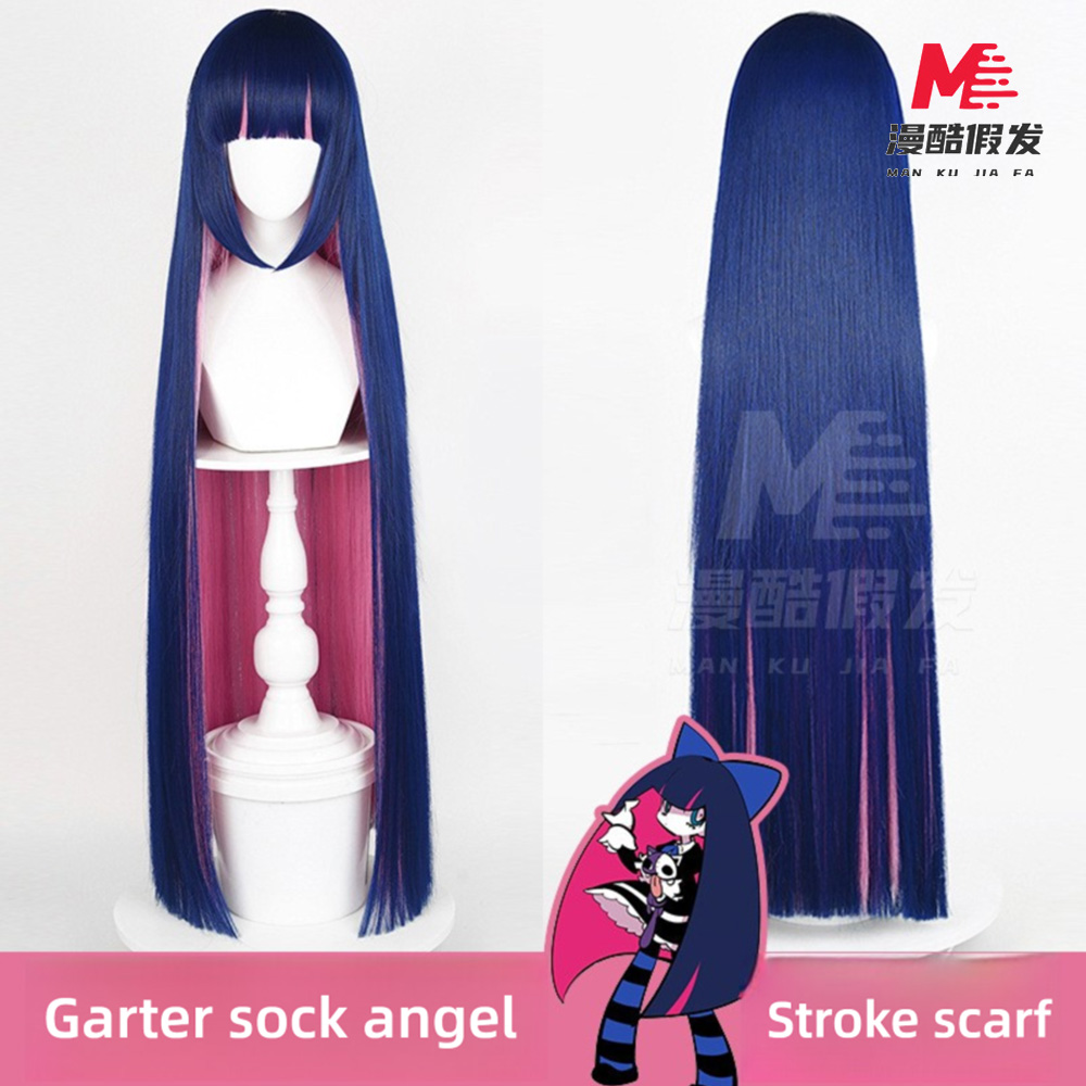 1:1 recrée la coiffure signature de Stocking. De longues couches extérieures bleues droites avec des brins intérieurs roses cachés, reflétant son esthétique avant-gardiste et bicolore. Une frange soignée encadre le visage, capturant son ambiance à la fois cool et ludique. Parfait pour les tournages d'anime, les séances à thème Panty & Stocking ou les rassemblements goth - lolita.